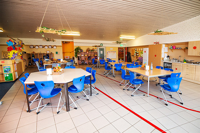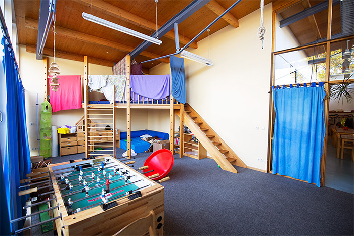Dafür stehen ihnen außer dem großzügigen Gruppenraum eine Werkstatt, ein Ruhe- und Spieleraum sowie die Turnhalle, ein weitläufiges Außengelände und der OGS-Garten zur Verfügung.
